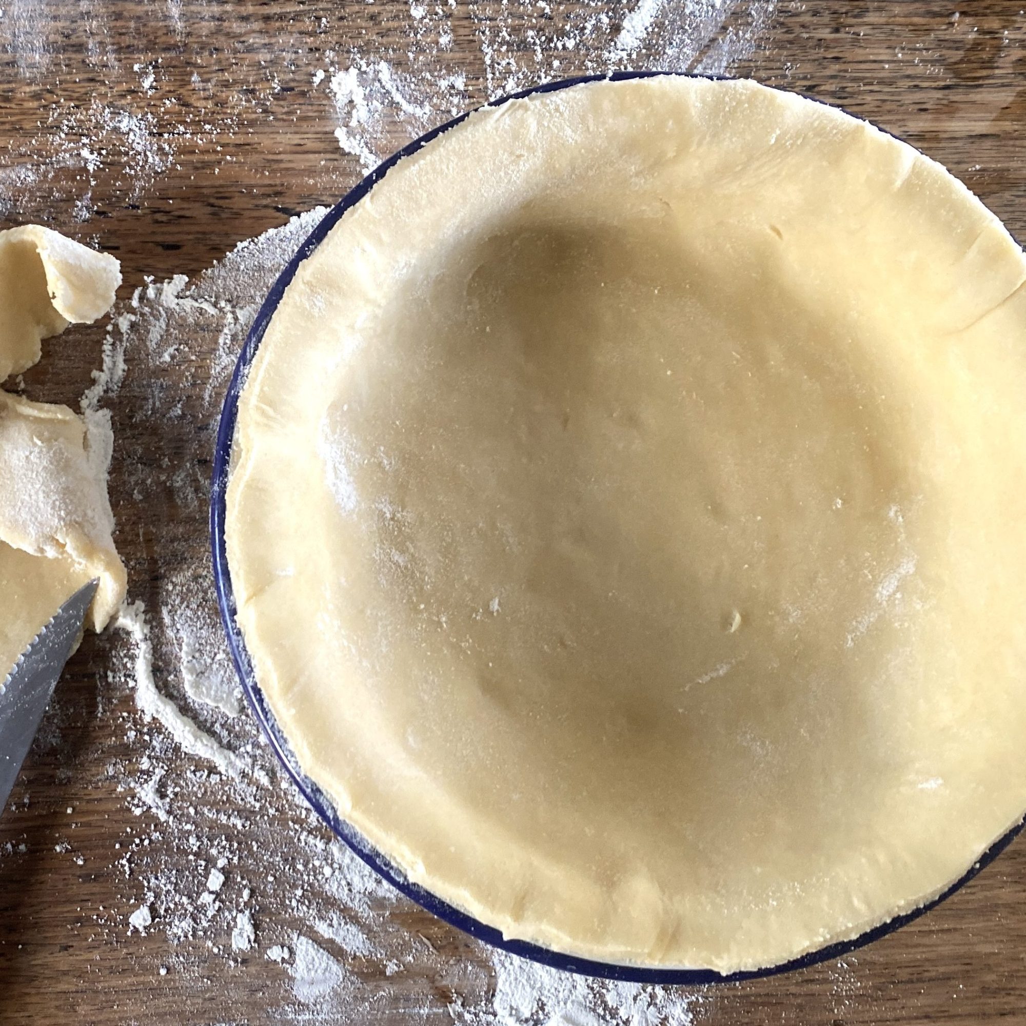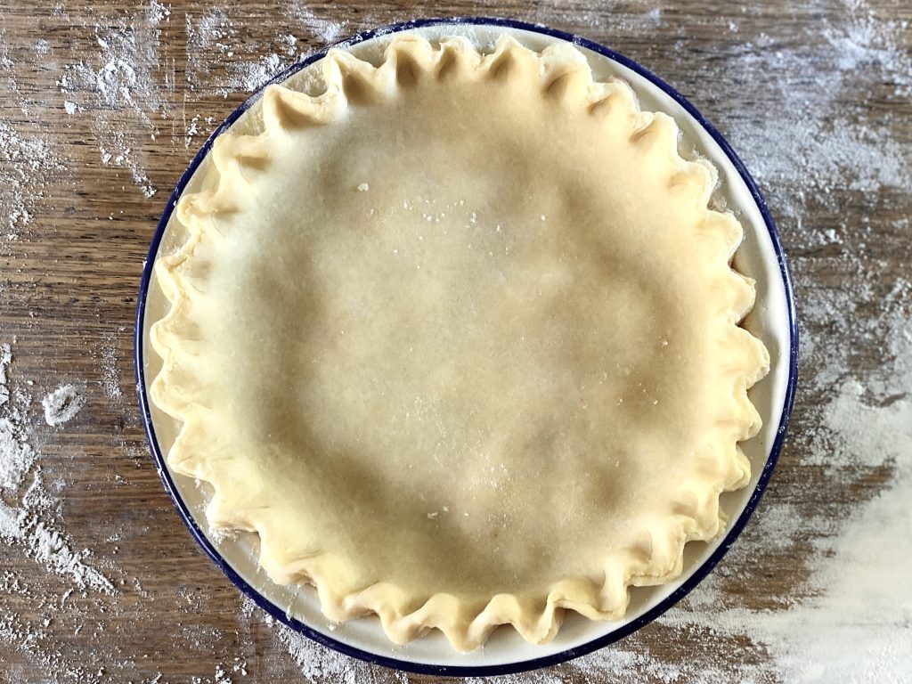 Follow my recipe one quantity of easy, flaky sourdough pie crust, making sure to refrigerate it for at least 2 hours before baking.